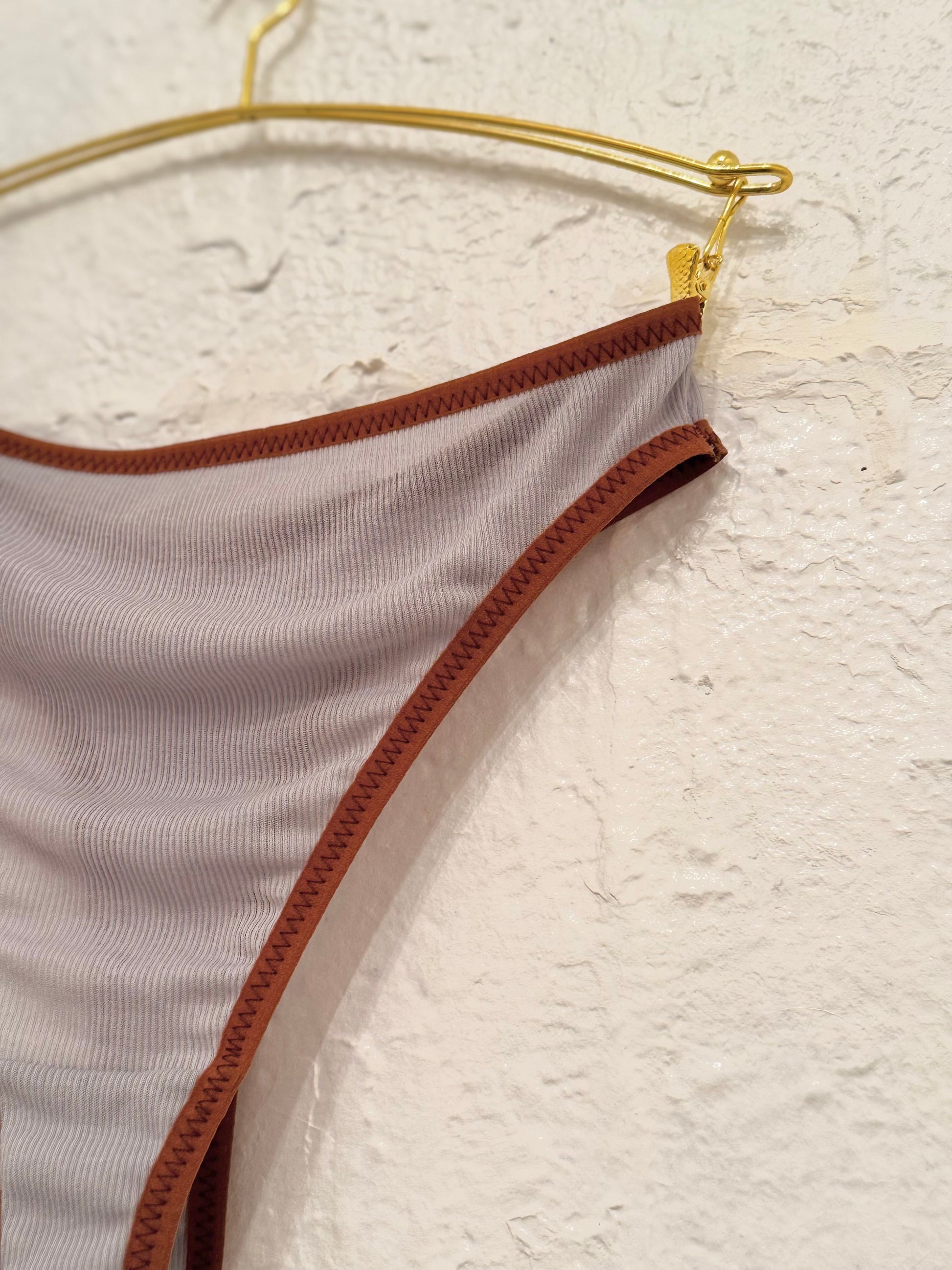 細番手の綿をハリを生むナイロン糸でカバーリング。